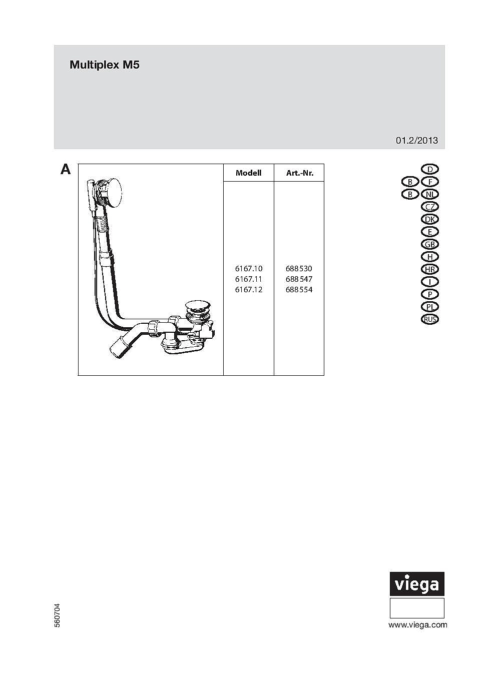 Viega Multiplex badafvoer- en overloopcombinatie m. waste verlengd chroom 364182
