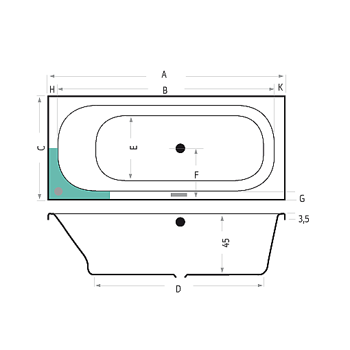 - 190x90x50 cm, inclusief badpoten. (LxBxD)