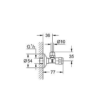 Beschrijving Grohe Eggemann hoekstopkraan, chroom. glans, haaks, afsluitmechanisme bovendeel niet keramisch, met afdekrozet, bediening greep, aansluiting aanvoer buitendraad, maat aansluiting aanvoer 1/2", afgaande aansluiting klem, maat afgaande aansluiting 3/8", kraan messing, soort greep knop,