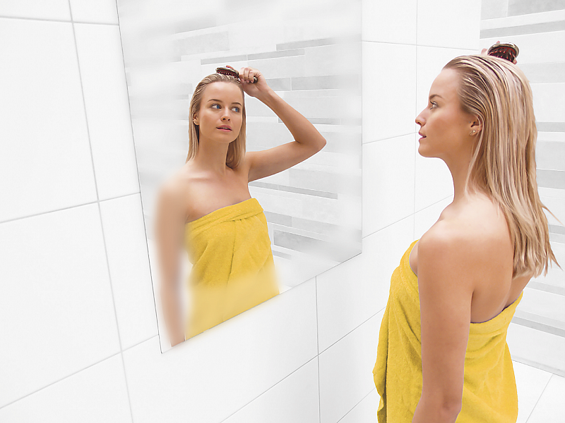 De spiegel mag niet beschadigd zijn (bv: afgebroken stukjes van de rand, handmatig op maat gesneden etc.) i.v.m. mogelijke scheurvorming door spanningsverschillen tijdens het opwarmen. Voor bevestiging kun je eenvoudig gebruik maken van de zelfklevende achterzijde. Deze moet direct op de achterzijde van de spiegel worden aangebracht.