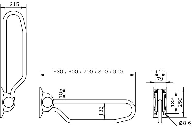Door de kenmerkende dubbele buis kan de beugel in opgeklapte stand veilig worden vastgehouden op een gangbare reikafstand zonder vingers af te klemmen of aan de muur te schaven.