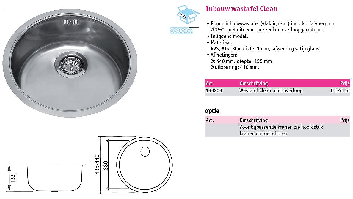 - RVS, AISI 304, dikte: 1mm, afwerking satijnglans.
