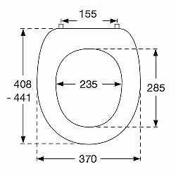 Deze zitting is geschikt voor universele toiletpotten met een hartafstand van ongeveer 155 mm. Controleer dit even voor montage.