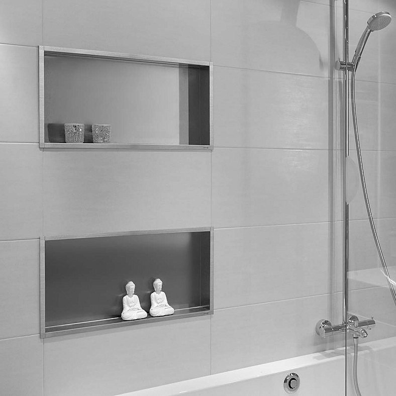 Kant en klare RVS inbouwnisjes voor in de doucheruimte. Simpel, eenvoudig en fraai. De LoooX BoX is ook verkrijgbaar met 10 cm inbouwdiepte of met geïntegreerde spiegel.