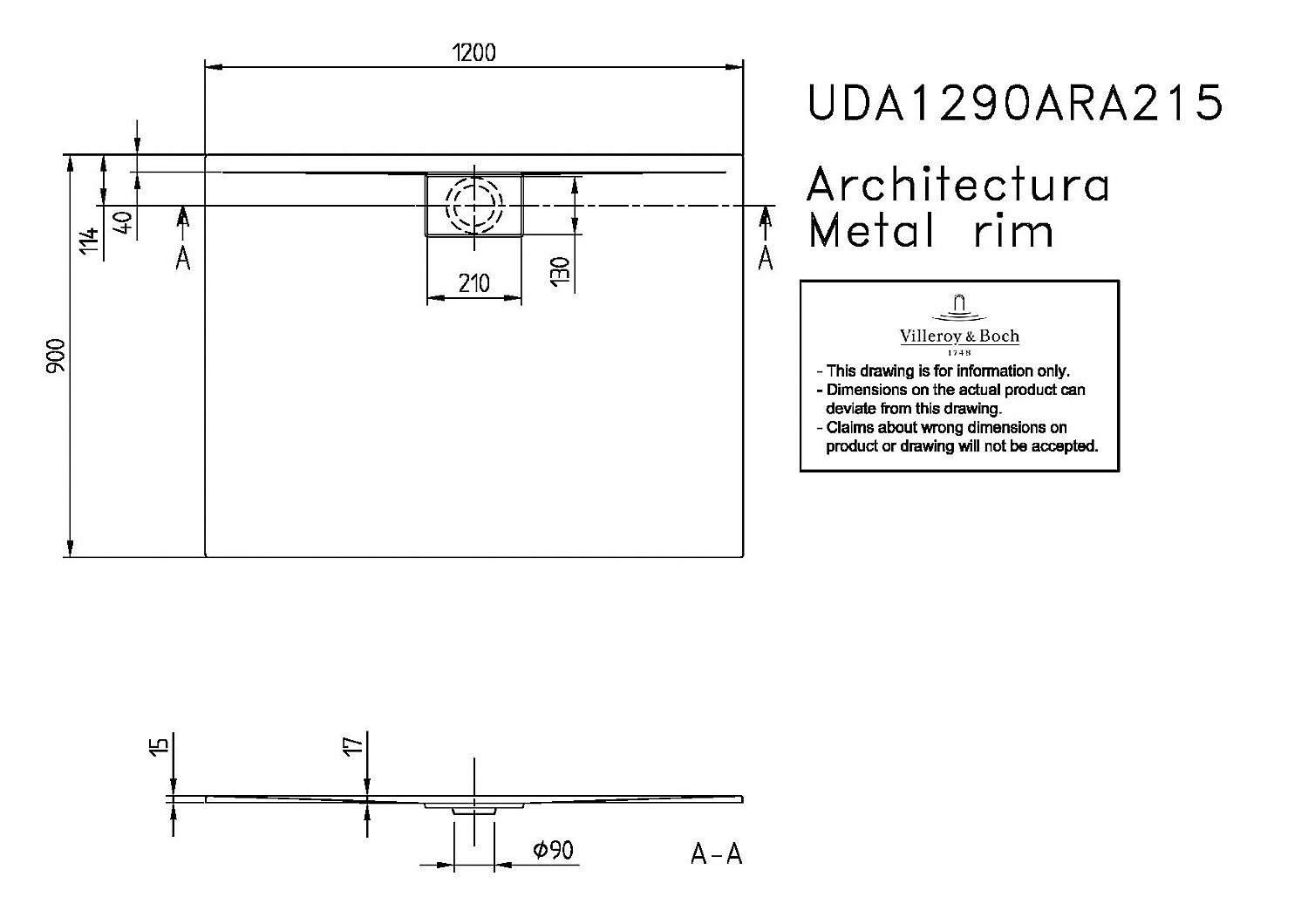 - Bij aankoop van een Architectura MetalRim douchebak in de kleur StarWhite (96), adviseren wij om de chroom (UCWAS023161) of de edelmatchroom (UCWAS023169) afvoerafdekplaat bij te bestellen.