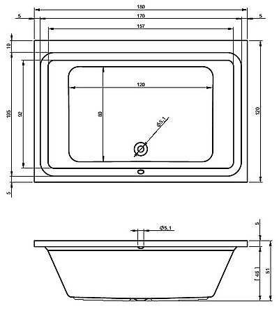 Inbouwbad, hoogglans wit acryl bad. Tevens verkrijgbaar met de whirlpoolsystemen: Air, Flow, Joy of Bliss.