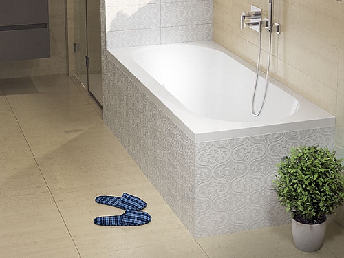 Inbouwbad, hoogglans wit acryl. Tevens verkrijgbaar met de whirlpoolsystemen: Air, Flow, Joy of Bliss.