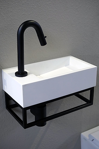 - Solid surface dus niet keramisch maar strak gegoten composiet materiaal