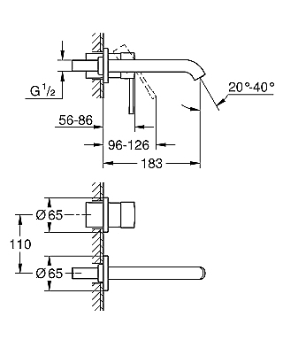 | Voorsprong uitloop: | 183 mm |