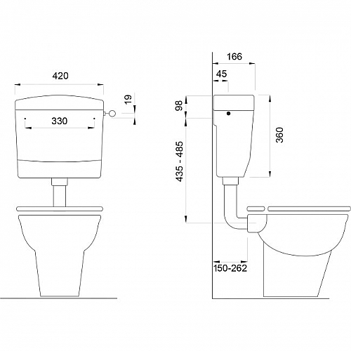 De maatvoering van alle aansluitpunten bij de WISA 900 is identiek aan de oude modellen WISA 250 en WISA 200. Hierdoor is de vervanging van een oud WISA toiletreservoir in slechts enkele minuten te realiseren. HIermee bespaart u op installatiekosten. Het WISA 900 reservoir is een elegant en onderhoudsvrij laaghangend reservoir, dat past in elk toiletruimte. Standaard is dit reservoir afgesteld op een spoelvolume van 6 L, maar dat is te vergroten naar 9 L. Door de waterbesparende spoelonderbreking verbruikt de WISA 900 niet meer water dan noodzakelijk. Het WISA 900 reservoir is uitgerust met een geruisarme hydraulische vlotterkraan van kwalitatief en technologisch hoog niveau. De wateraanvoerleiding kan links, rechts of middenachter aangesloten worden.